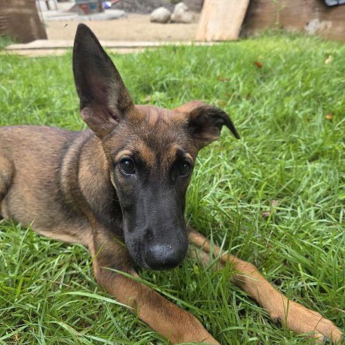 Choco is only seven months old, so she has lots to learn, but she’s a quick study at her training classes. Though she has just arrived on Vashon, she appears to be housetrained and has not had any accidents inside.