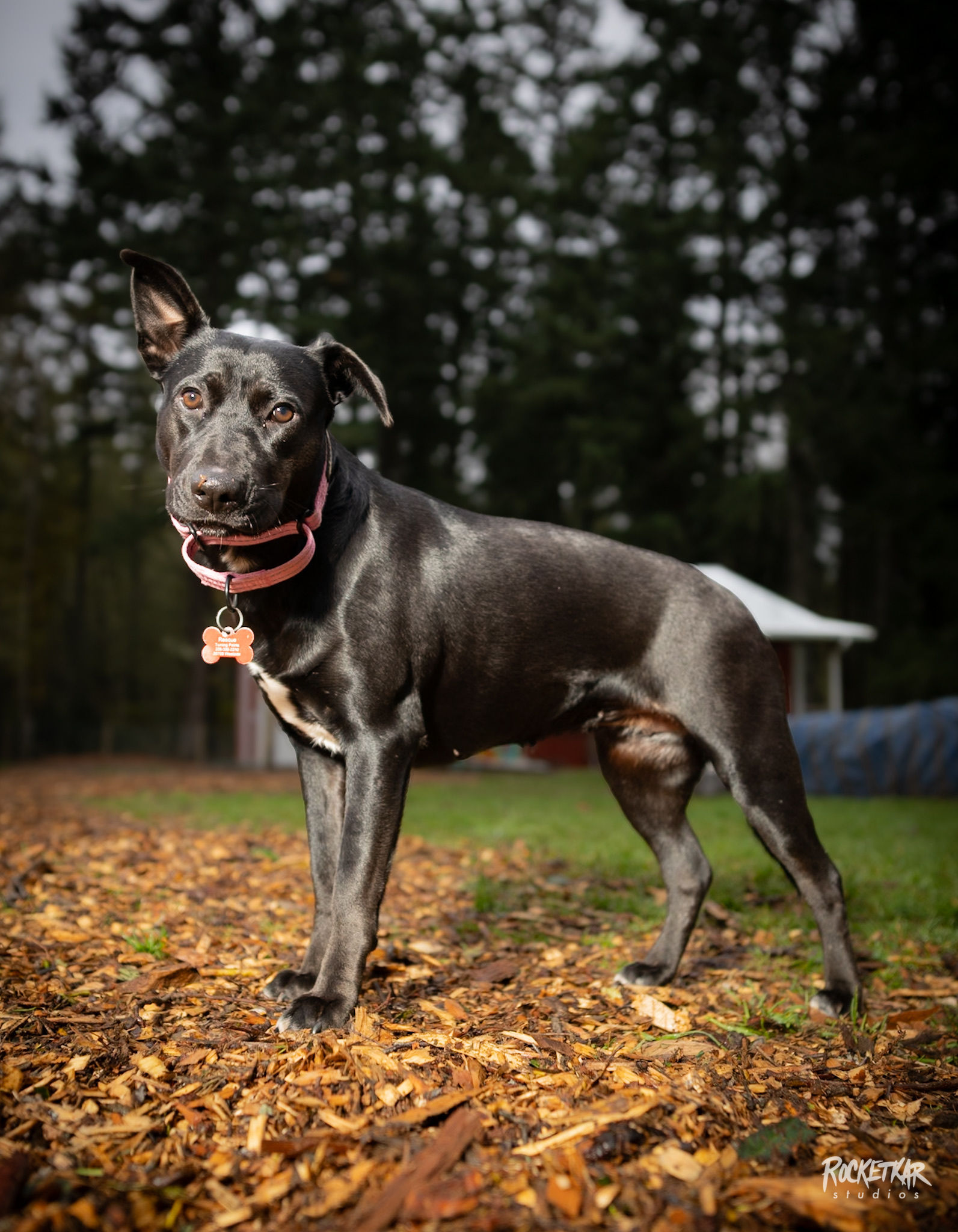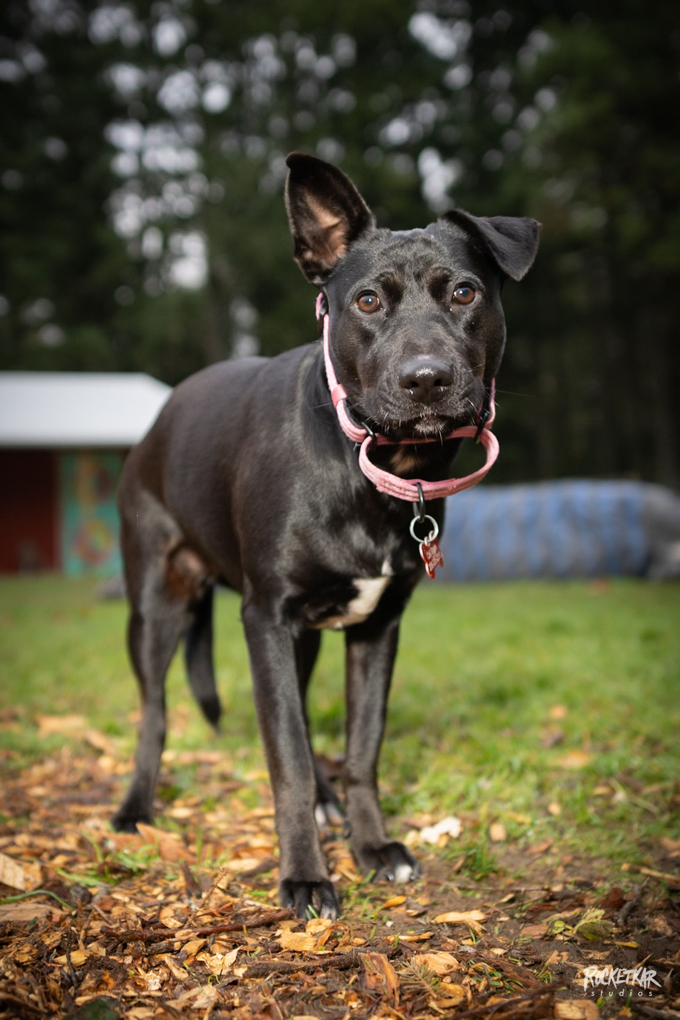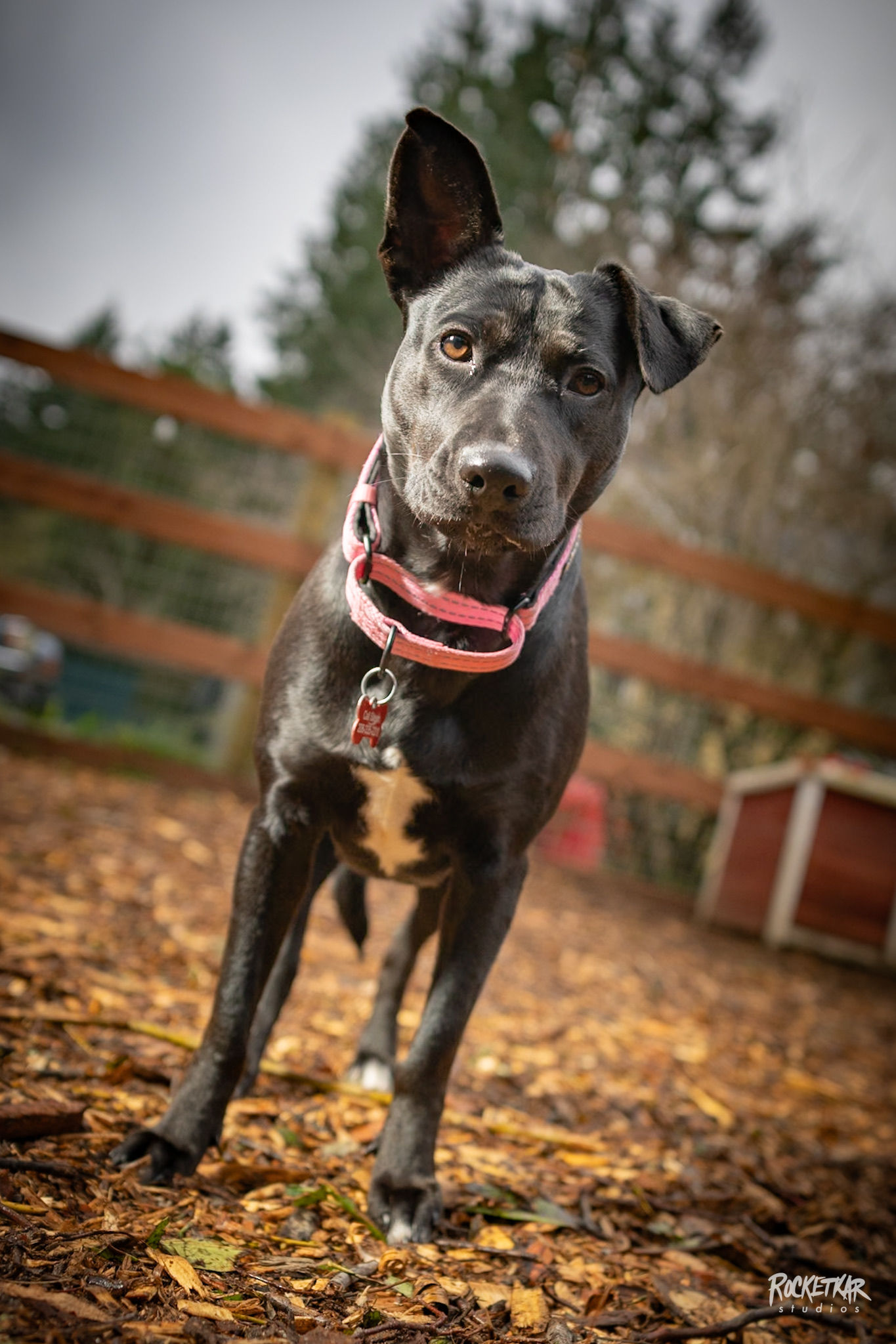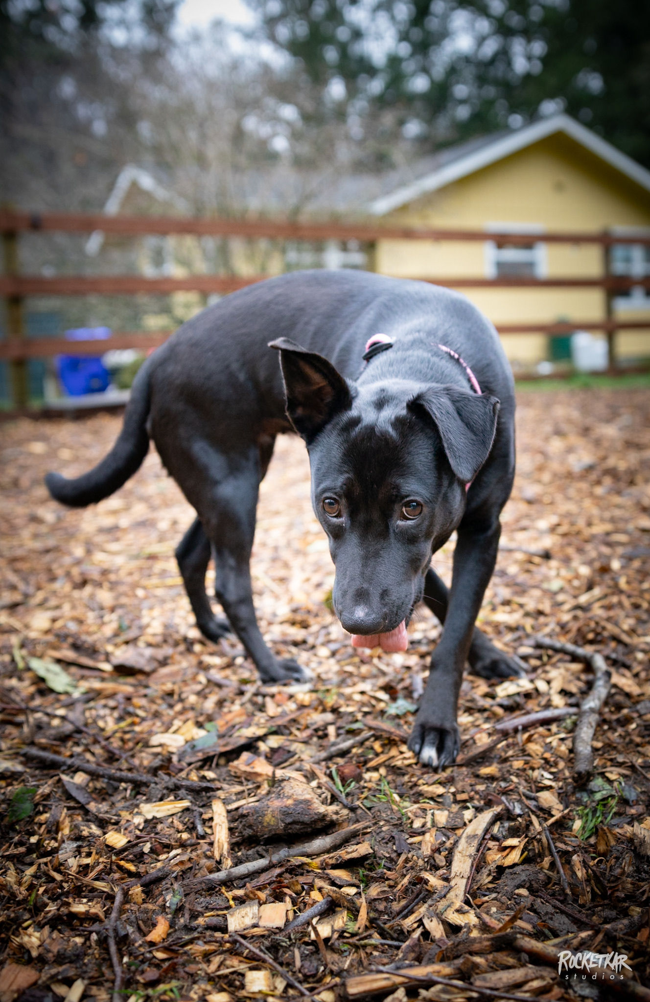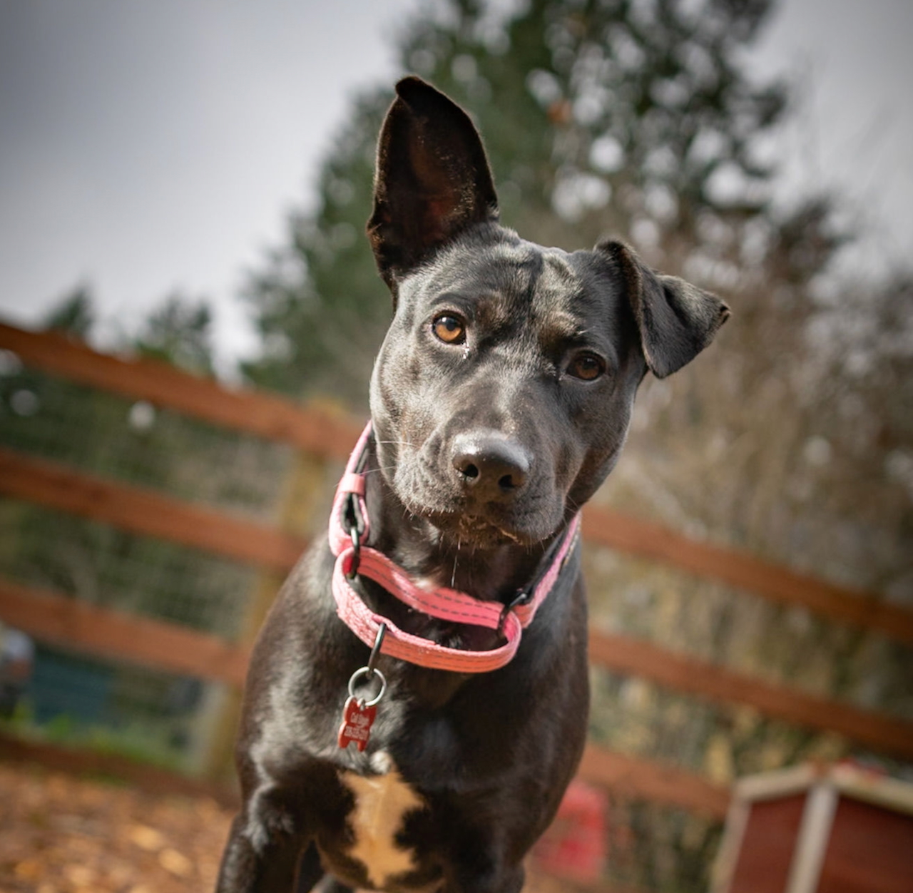 Guava is a 1.5–2 year old Lab mix, approximately 30 lbs., who’s sweet, loyal, and cautious. Once she trusts you, she bonds deeply and wants to stay close. She’s crate and house trained, great on leash, and playful with other dogs. Nervous with loud noises and new people, she needs slow introductions (soft voice, crouched body, open arms, food or toy). Her bark can sound fierce but she has never been aggressive. She likely survived a car accident before rescue and recovered well. Guava will do best in a patient, calm home with consistency and love.