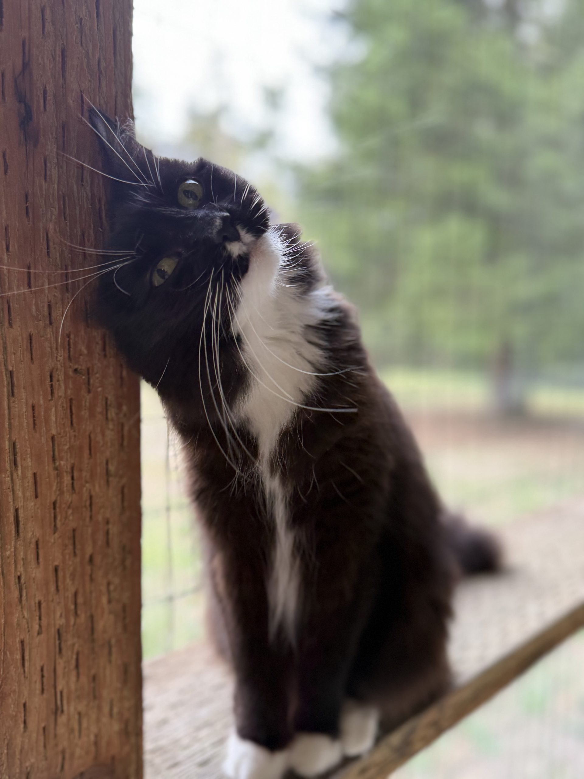 Don’t let the name fool you, Chilly is anything but frosty! This super friendly gal usually leads the charge to greet the volunteers with head bonks and purrs. The smallest of the Pennsylvania 5, she rules the roost (and the catio)! While she is comfortable with other cats, she has a big personality and may do best as a solo artist in your home. She will reward her new family with silly antics, a warm welcome anytime you enter the room, and the sweetest little trills.