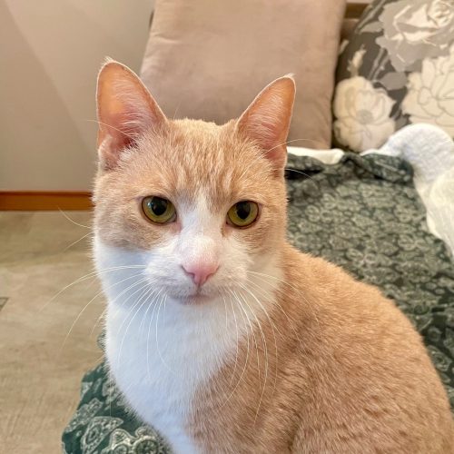 After getting T-boned by a car back in November of 2025, T-bone earned his moniker. This boy has made a remarkable recovery after spending over 6 weeks in a kennel to heal. Now T-bone is as good as new, and he is anxiously waiting for his next chapter in a loving home. T-bone is happy to be strictly indoors after his adventure on the street. The vet has determined T-bone to be about 7-8 years old. He loves being with humans and making himself comfortable in a lap.