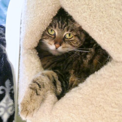 Holly can be a bit shy at first, but a little patience and persistence (like telling her how beautiful she is!) is all it takes to see her sweet personality shine. She arrived with her roommates, Penelope and Trudy, after her person passed away, and she is ready to settle into a quiet and stable home where she can feel safe and loved.