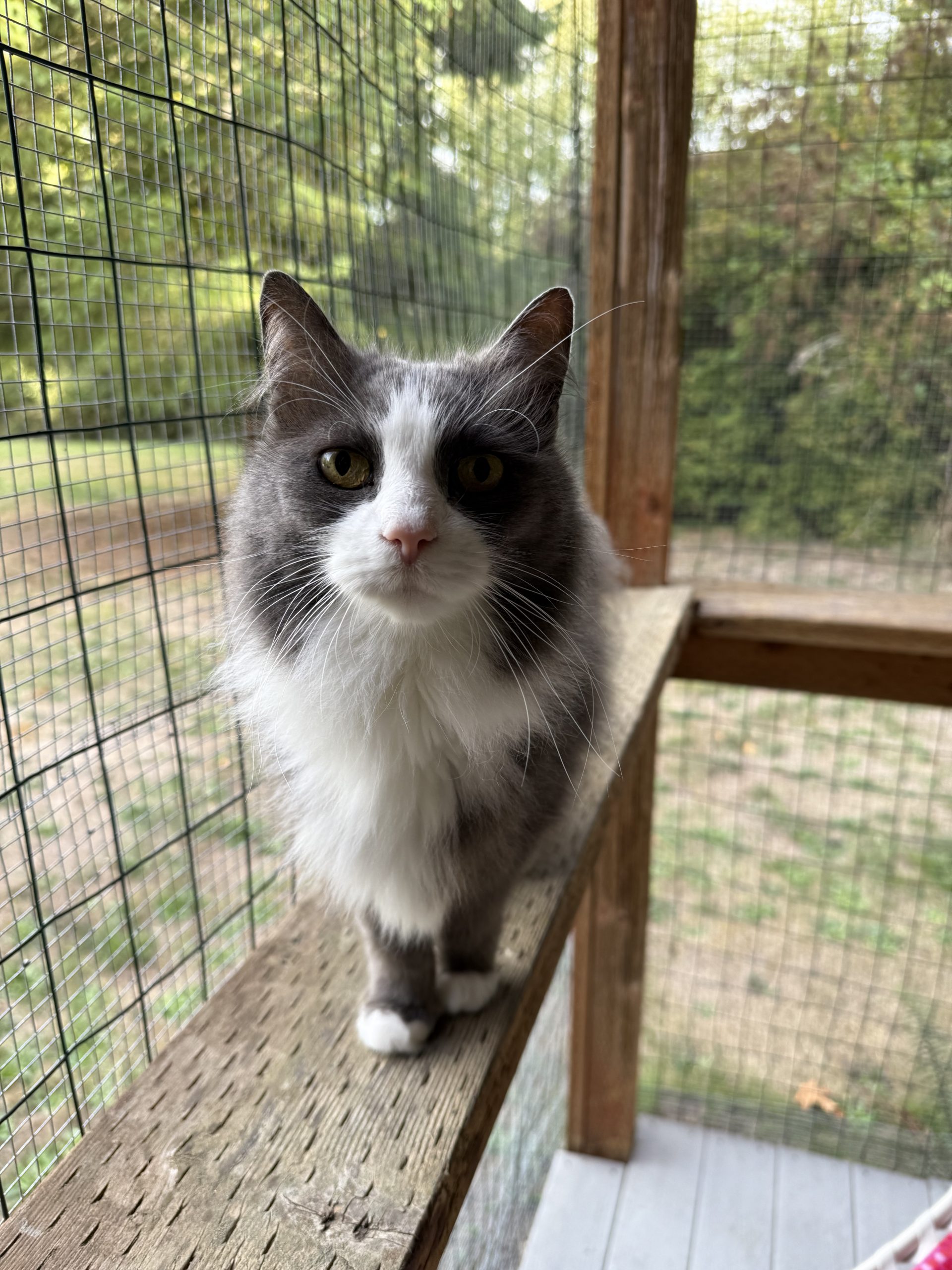 Little Gray would love to find a home with one of his buddies, and an indoor home is required for this purr machine.