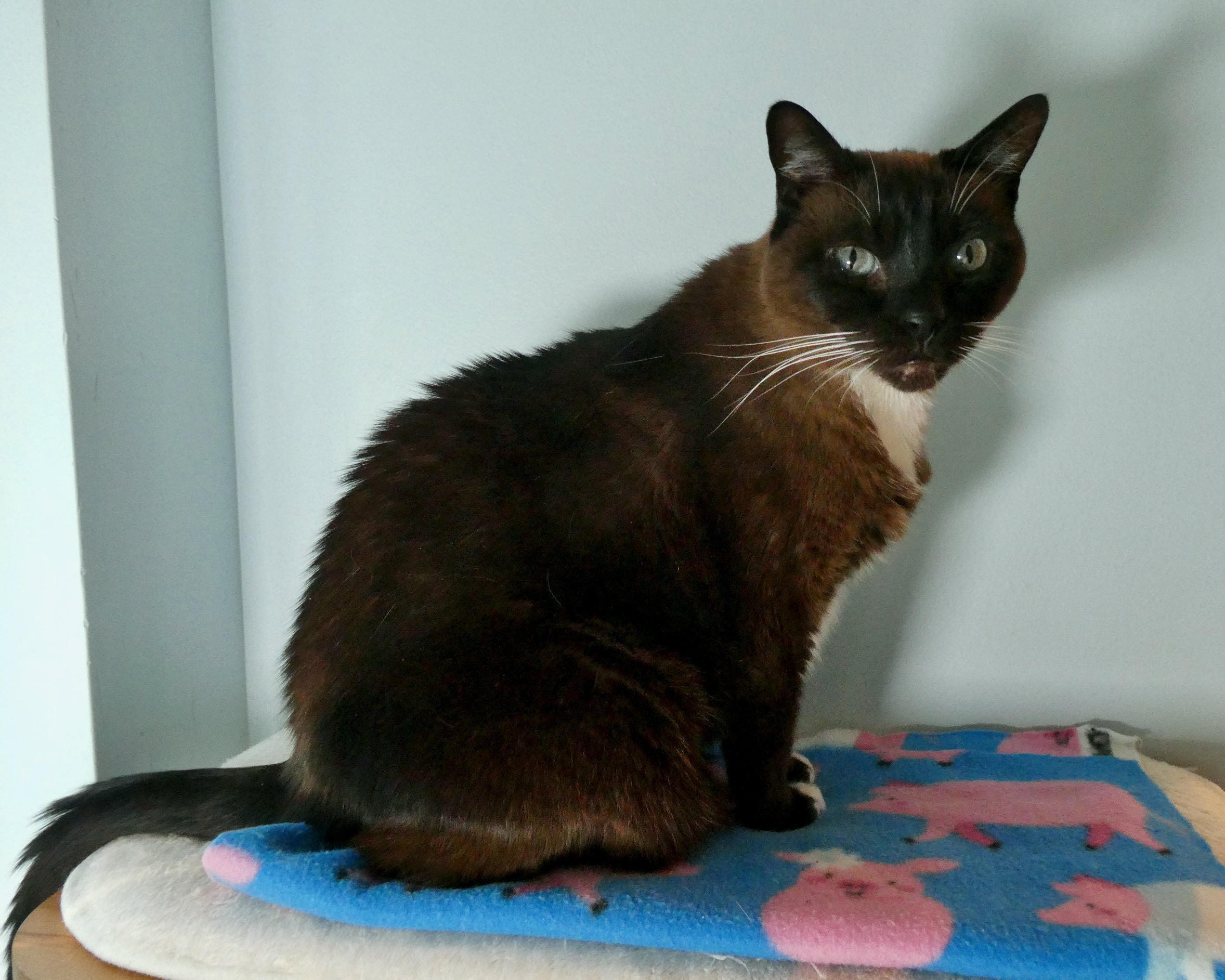 Thea is a lovely gal who definitely has some Siamese in her. She's a chatty girl who needs a quick beat to warm up, but it doesn't take too long before she is leaning in and begging for more pets. If you're looking for a sweet, gorgeous conversationalist, Thea might be just the right fit for you!