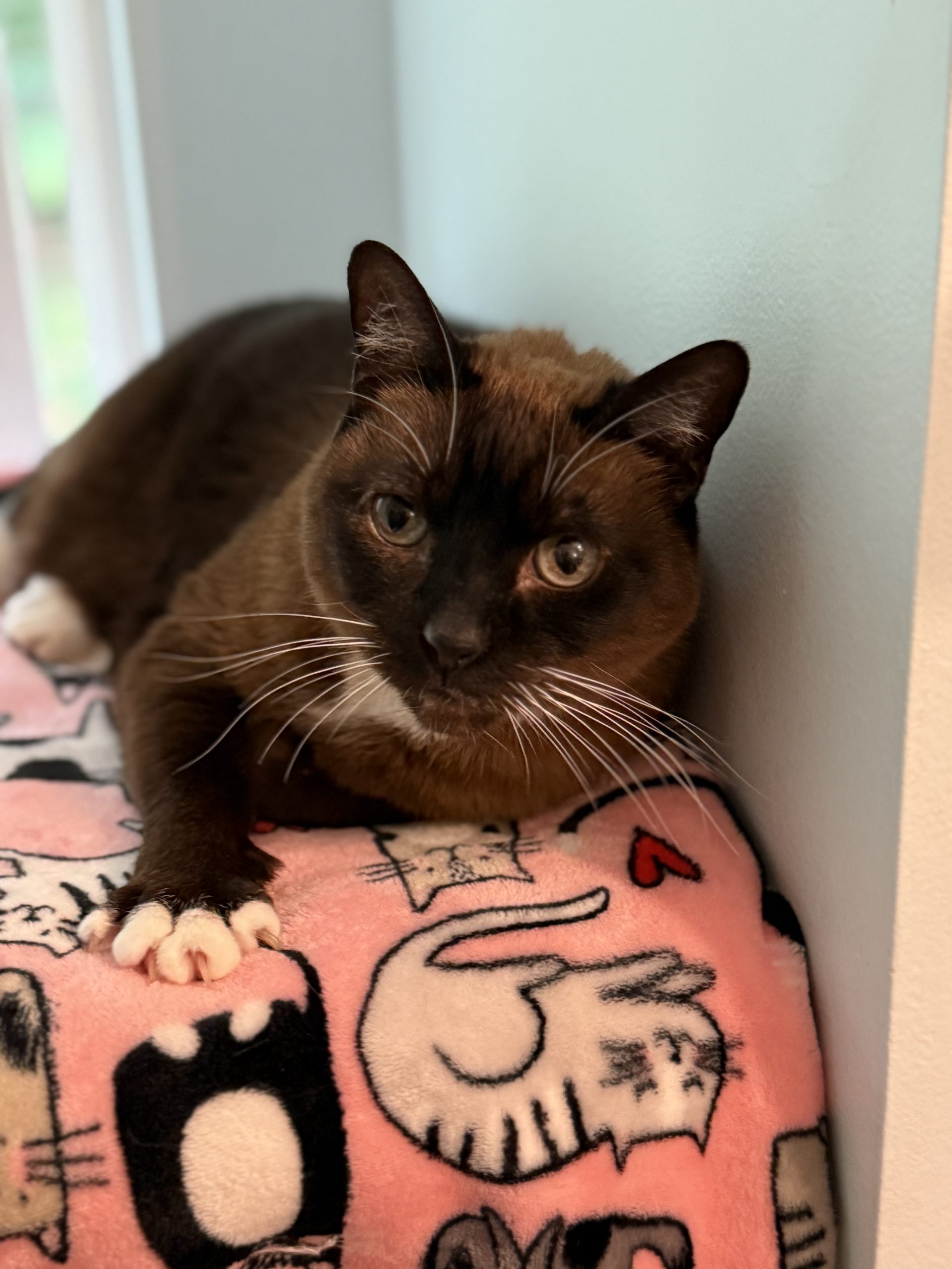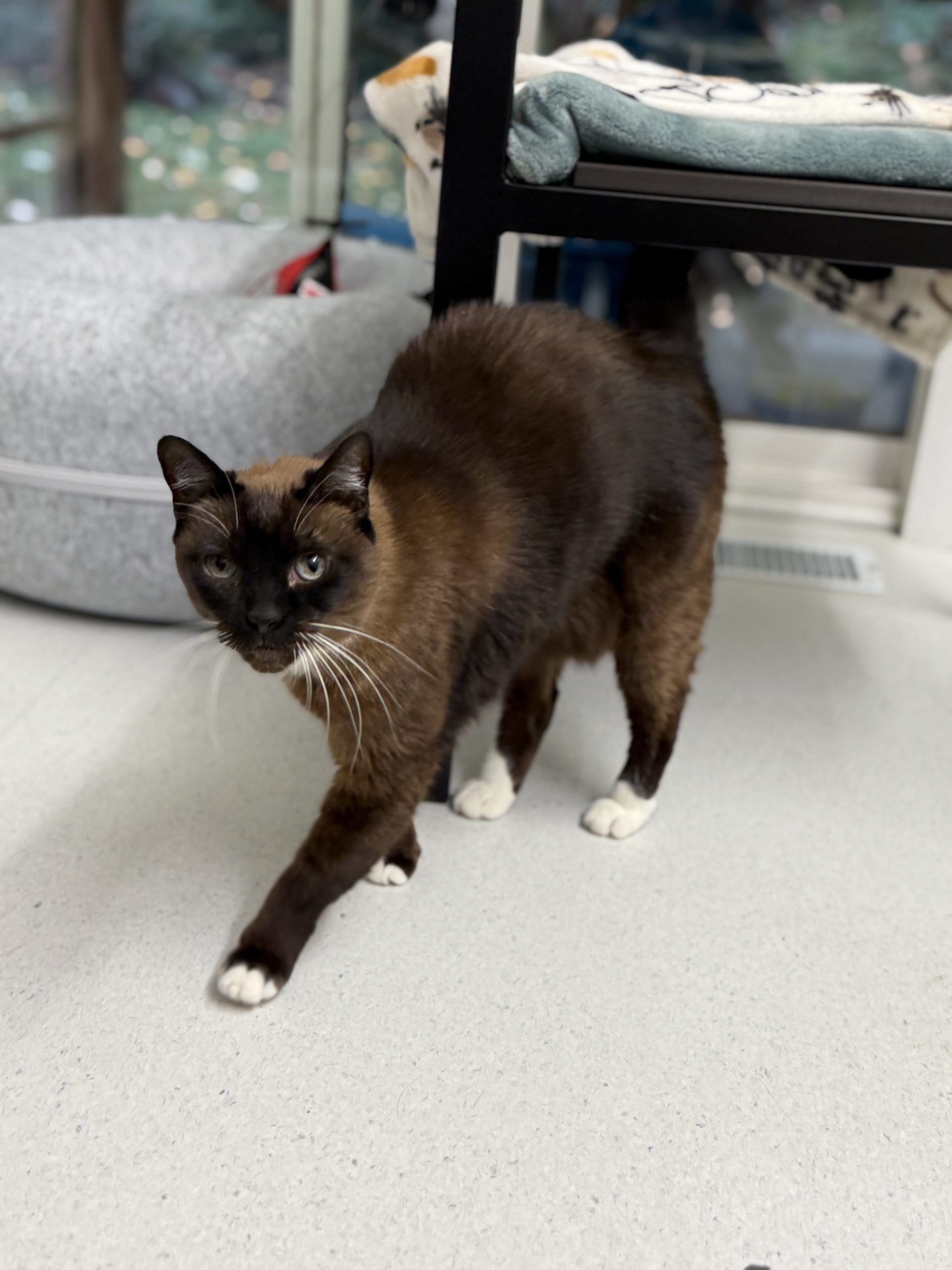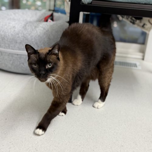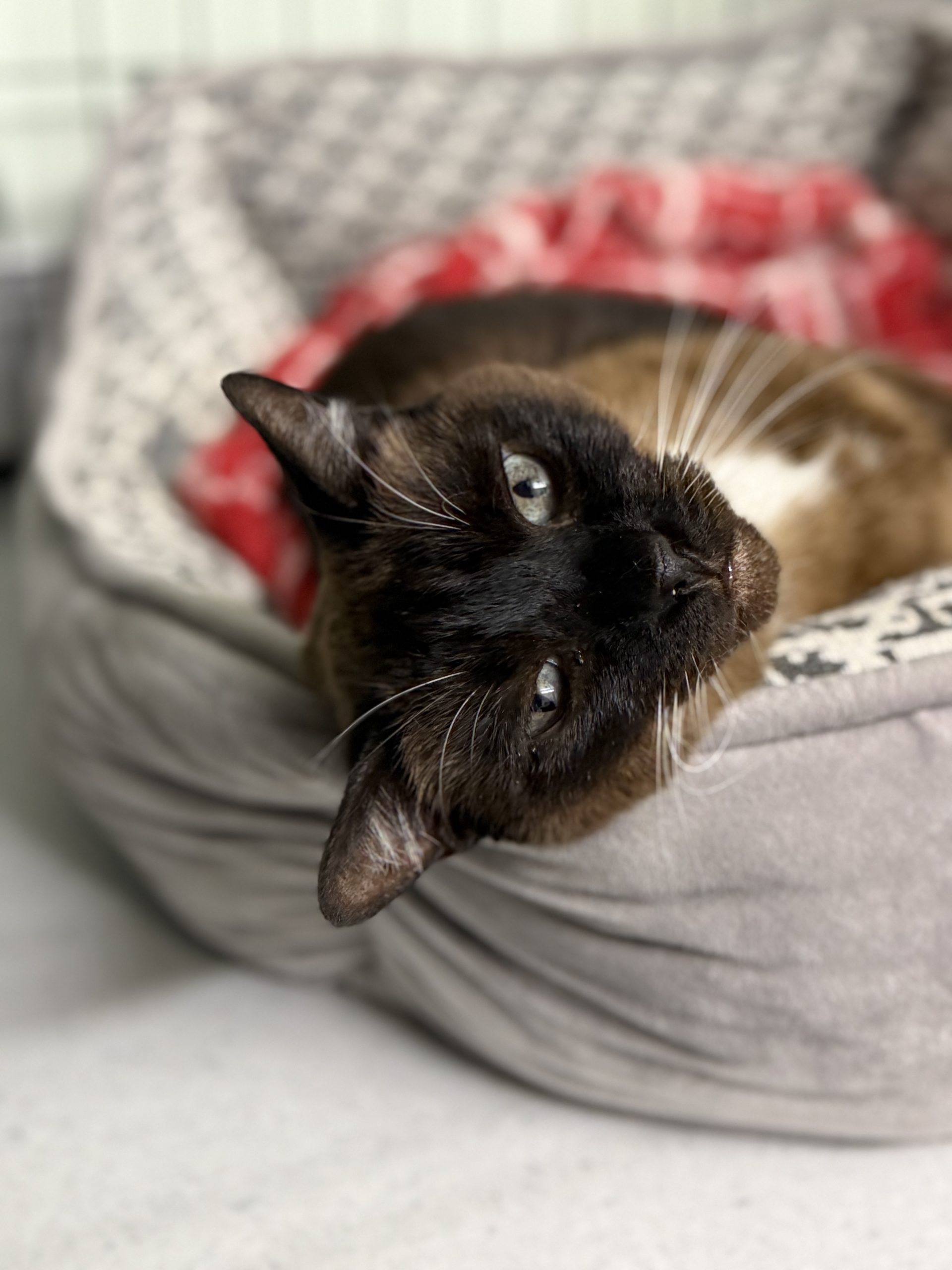 Thea is a very sweet Chocolate Point Siamese. She is both playful and affectionate and would like to be around you as you go about your day. Thea came to VIPP after her person entered hospice care and could no longer care for them. Thea is looking for a new home where she can be the main attraction. An indoor home is required.