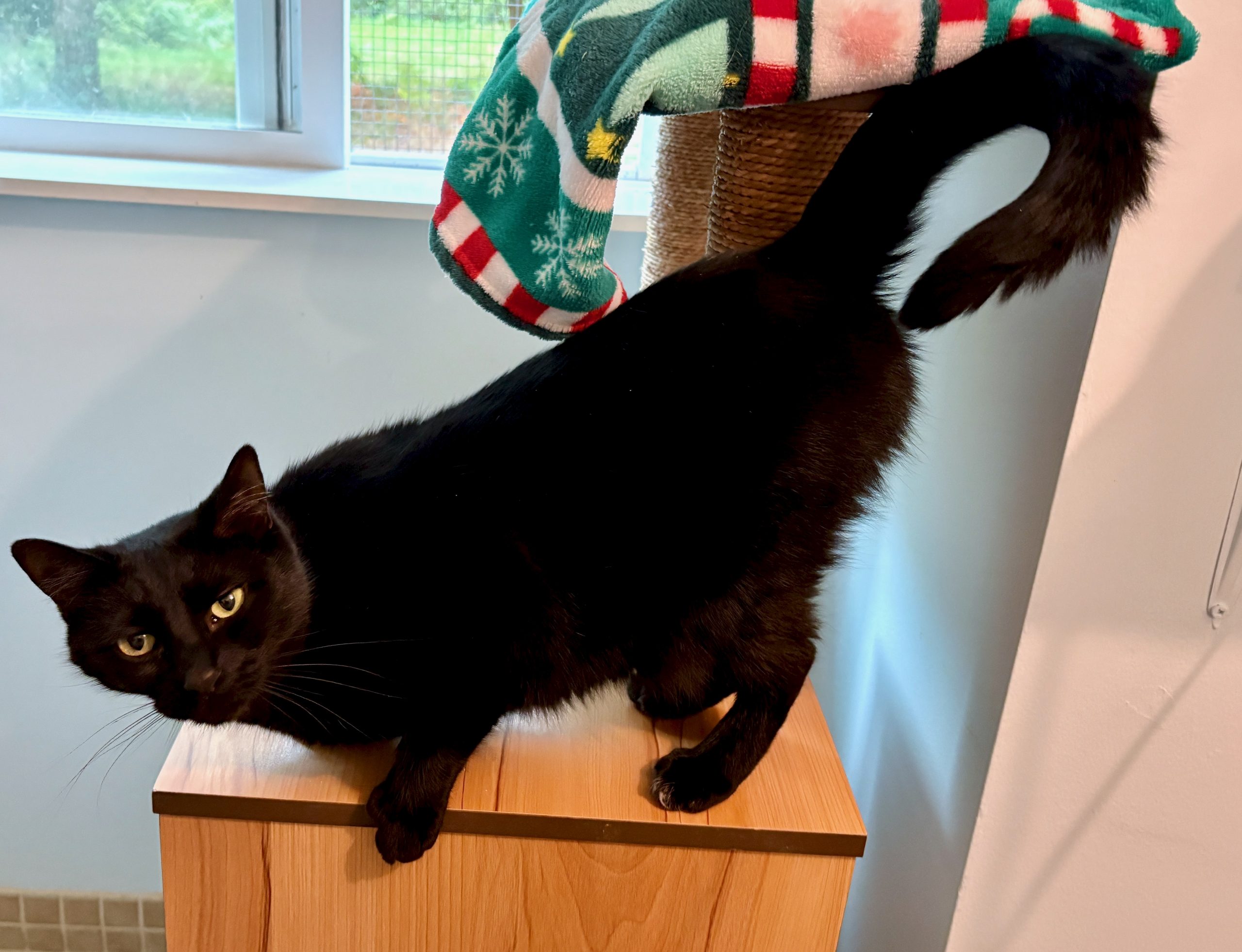 She loves to climb, and always finds the absolute best perch from above where she can watch birds out the window, or the humans below scurrying around doing her bidding. Yoshi is looking for an indoor only home, and would be the perfect addition to any family!